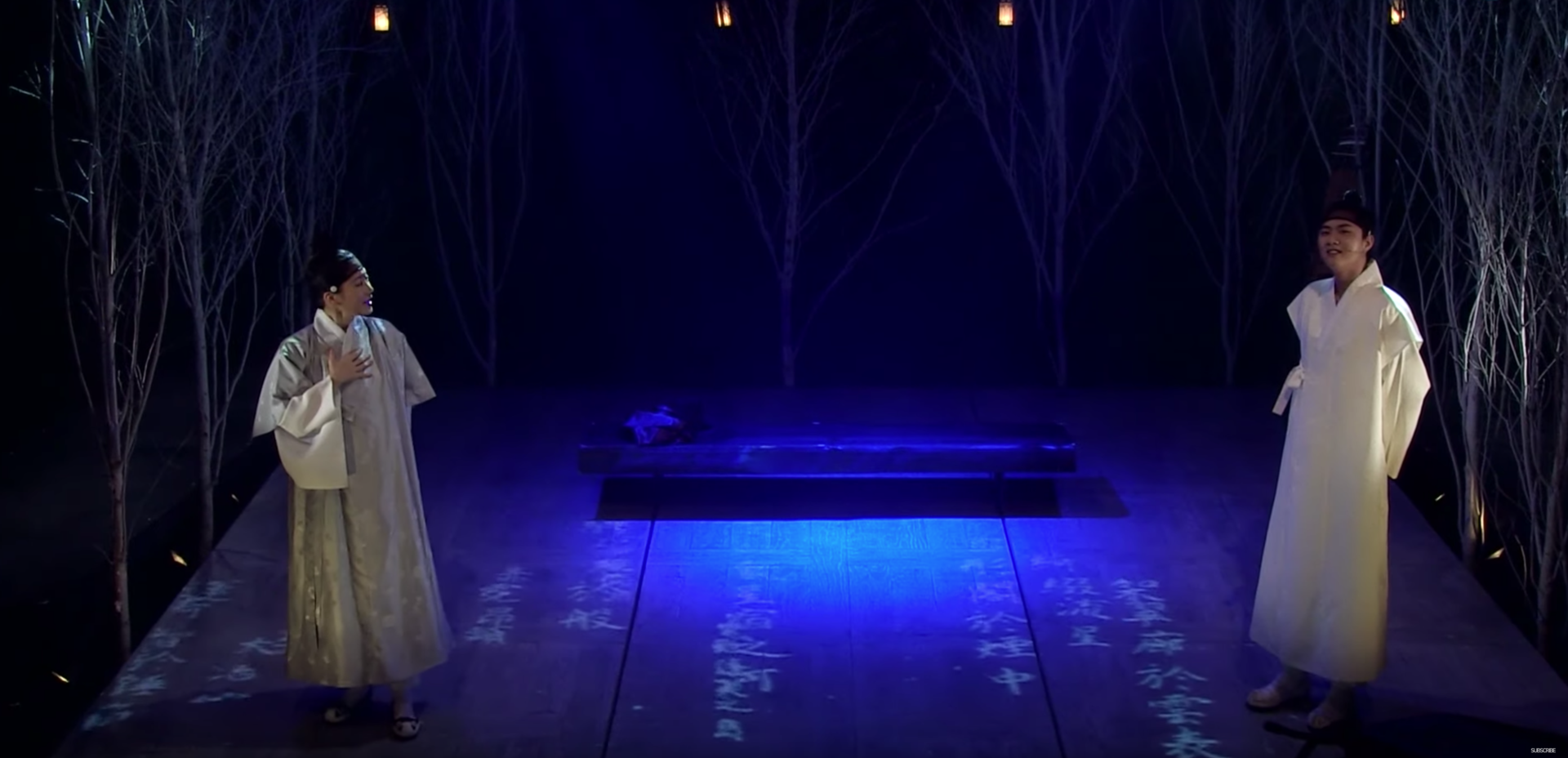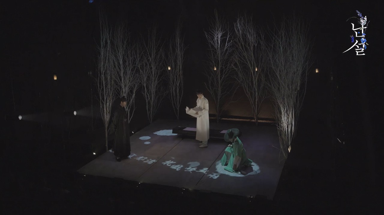 뮤지컬 <난설>은 조선시대 최고의 여류시인으로 손꼽히는 허난설헌의 이야기를 담아냈다. 백색의 화선지와 같은 무대 바닥에 프로잭션 맵핑을 통해 허난설헌의 시를 영상으로 표현하거나 인물들의 고뇌를 나타냈다. 극 초반에서는 허균이 느끼는 고통을 그의 주변에 서 멈도는 화염들과 그에 반응하는 허균의 모습을 통해 나타냈으며 극의 말미에서는 자신 이 지은 시를 불태우는 허난설헌의 모습을 영상과 함께 보여주었다.