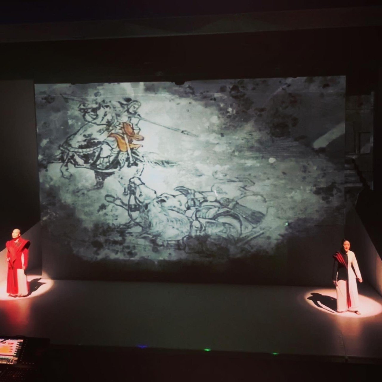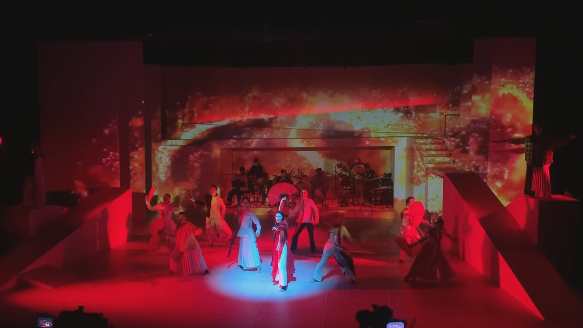 판소리 "적벽가"를 현대적으로 재해석한 뮤지컬 <적벽>의 무대영상 디자인에서는 영상의 쓰임새가 크게 3 가지로 나뉘었다. 극의 처음, 적벽의 배경을 애니메이션으로 도창의 창과 함께 관객에게 알려주는 역할을 하 였으며 각 장면의 도입부에는 자막으로 활용되었다. 마지막으로 극의 가장 중요한 대목인 동남풍, 적벽대전, 군사점고 등에서는 무대 전체 공간을 활용하여 영상으로 극의 긴장감을 높여주었다. 특히 동남풍에서는 배우 들만으로 보여주기 어려웠던 동남풍이 부는 모습을 영상을 통하여 효과적으로 나타냈으며 적벽대전에서는 무대 전체 공간이 불타오르는 느낌과 동시에 이러한 불을 한 마리의 용에 비유하여 나타내었다.